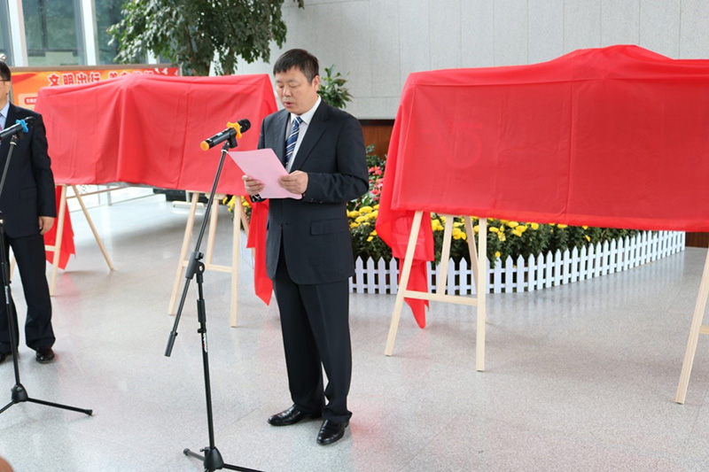 2017年10月15日,永昌集團(tuán)有限公司、嘉祥祥盛路橋有限公司在新辦公基地濟(jì)寧市任城區(qū)濟(jì)寧大道城市展覽館一樓大廳舉行揭牌儀式,永昌集團(tuán)董事局主席杜玉文、永昌集團(tuán)有限公司董事長杜宗平、永昌集團(tuán)有限公司總裁吳永隆、山東天下吉祥華鐵旅游文化有限公司侯董事長侯海泉及集團(tuán)主要管理人員100余名參加了儀式,永昌集團(tuán)有限公司總裁吳永隆主持揭牌儀式。