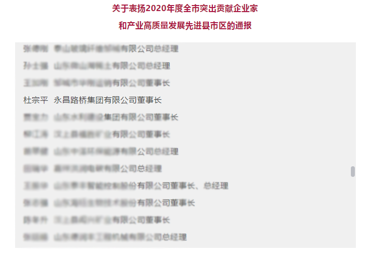 喜報丨杜宗平董事長被授予濟寧市 “2020年度明星企業家”稱號