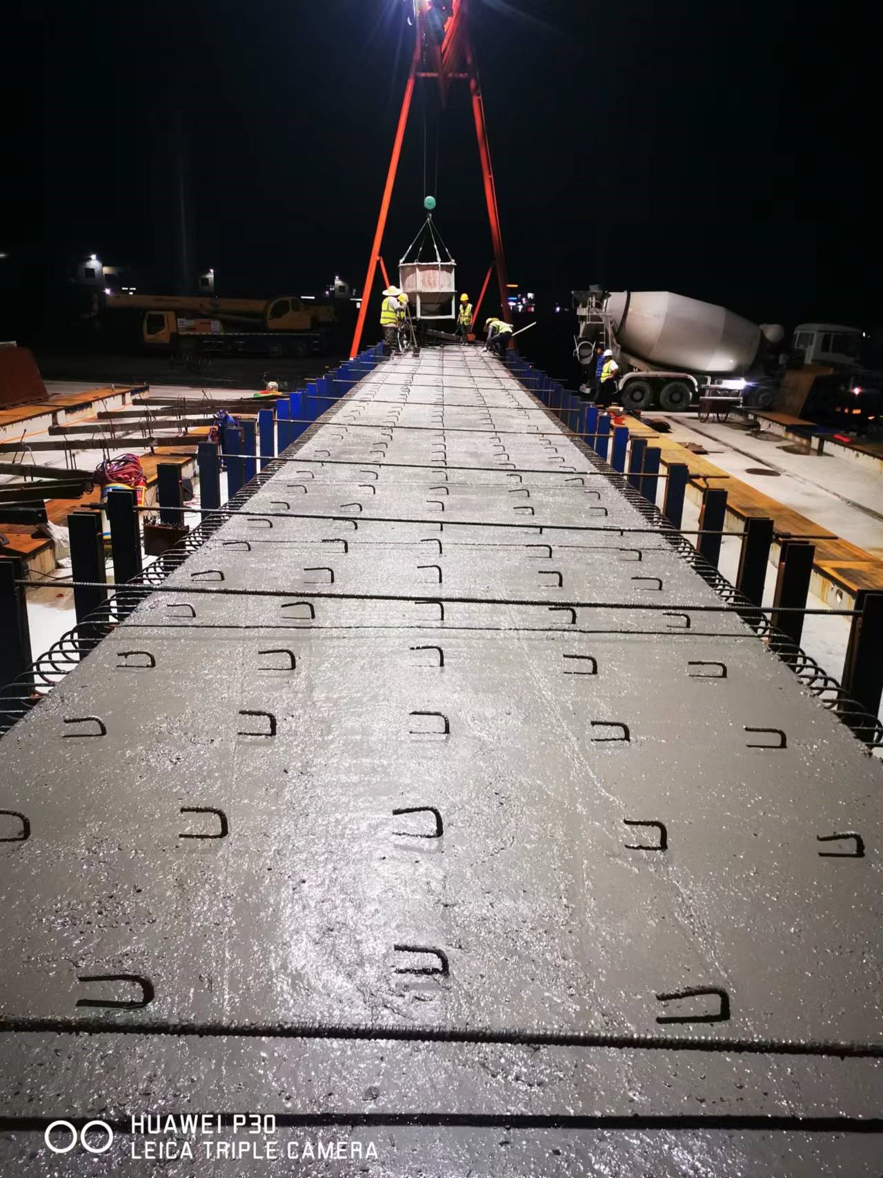 5月31日下午,經(jīng)過3個(gè)半小時(shí)的持續(xù)奮戰(zhàn),伴隨著混凝土振搗的轟鳴聲,由集團(tuán)承建的貴港西外環(huán)高速項(xiàng)目2#預(yù)制梁場(chǎng)首件30m預(yù)制箱梁順利澆筑完成。