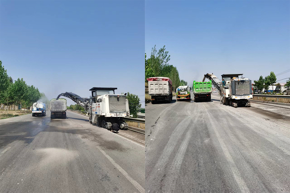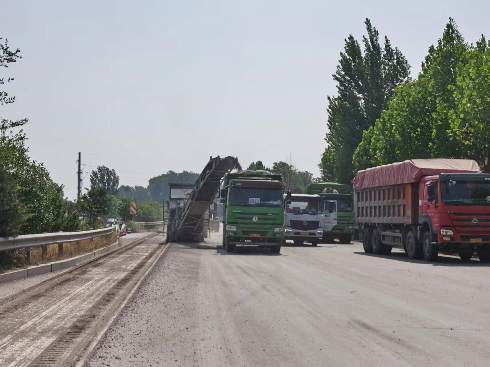 銑刨機現(xiàn)場鐵臂揮舞,運輸車輛往來不息。按照濟寧市公路事業(yè)發(fā)展中心的相關(guān)要求,項目領(lǐng)導班子早謀劃、早部署,動員全體建設(shè)者,鼓足干勁,科學管理,向時間要總量,向進度要質(zhì)量,向質(zhì)量要效益,積極采取“分段銑刨、及時清運、合理投入人員設(shè)備、多個工作面同時推進”等措施,努力克服施工現(xiàn)場“交通量大、交叉路口多、兩側(cè)障礙物多、連日高溫預警”等困難,戰(zhàn)高溫、斗酷暑,大力推動項目各項工作快速開展。