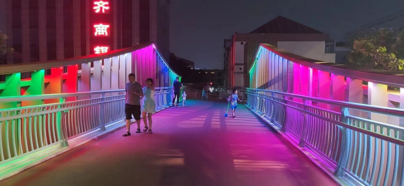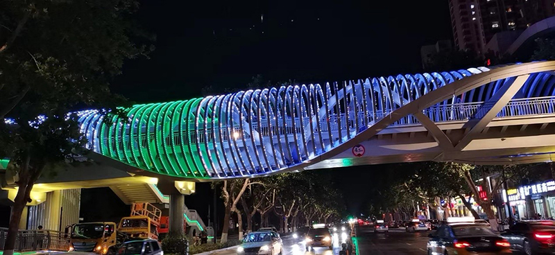 兩座天橋的投入使用實(shí)現(xiàn)了公園、體育館與周邊居民區(qū)的交相連接,滿足了城市主干道路的通行速度和以人為本的交通需求,又提高了人文關(guān)懷及觀賞性。天橋的景觀亮化工程,在炎炎夏日打造出絢麗多彩的都市分離式交通效果,為市民的夜生活增添一道亮麗的風(fēng)景線。